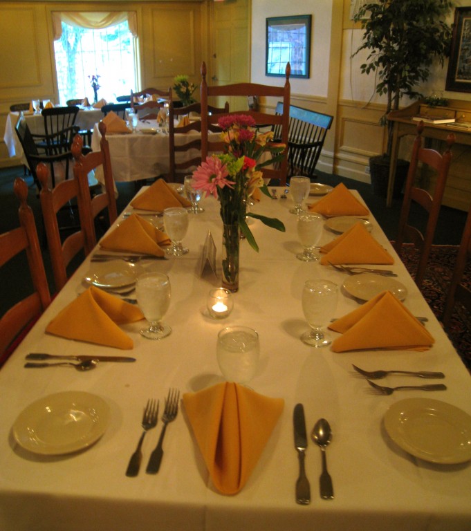 Although we may accommodate weddings on occasion, our forte really is in hosting rehearsal dinners, bridal & baby showers, and other group celebrations.  Our “Publick Room” is unusual in that it does not have the “feel” of a restaurant, but rather someone’s living room.  It offers a mantled fireplace, antique and reproduction furniture, & lovely artwork.  It is spacious so guests may mull around and speak to everyone.  Our seating plan is very flexible and can be tailored to anyone’s wishes.  Our food selections are extensive and our pricing is very competitive.  We only get rave reviews on our party food!
